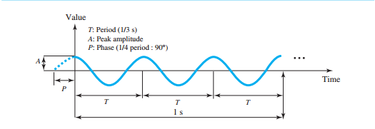 - 아날로그 신호는 주기(periodic), 비주기(aperiodic)라는 두 가지 형태 중 하나가 될 수 있다.