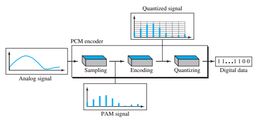 - 디지털 전송에서 데이터가 아날로그면아날로그-대-디지털 변환 기술이 필요하다.