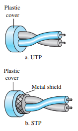 - 꼬임쌍선 케이블(Twisted-Pair Cable): 두 개의 구리선이 서로 꼬여 있어, 하나는 신호를 전달하고 다른 하나는 접지 역할을 한다. 주요 응용 분야는 전화선과 DSL(디지털 가입자 회선)이다.