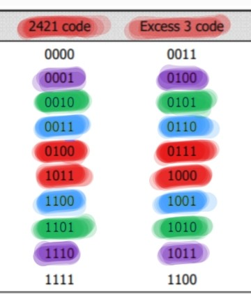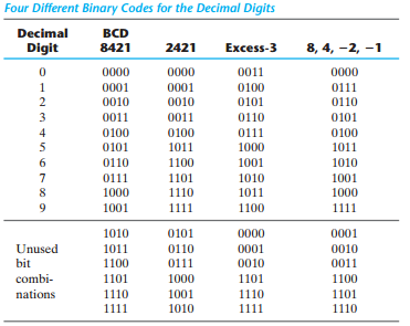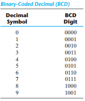0에서 9까지의 10진수를 0, 1의 조합으로 표시하는 코드
