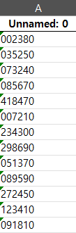 B행에 모든 종목 코드가 있는 파일을 구했다.