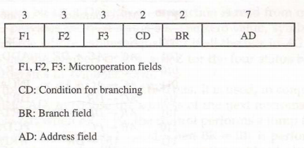 - 마이크로명령어는 레이블, 마이크로연산(Microoperations), 조건(CD), 분기(BR), 주소(AD) 5개의 필드로 구성.