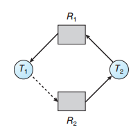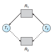 - 스레드 T1는 R2의 인스턴스 한 개를 점유, R1의 인스턴스 1개를 기다리며 대기