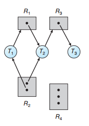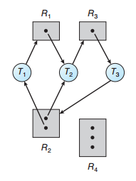 - 스레드 T2는 R1과 R2의 인스턴스를 각각 1개 씩 점유, R3의 인스턴스 1개를 기다린다.