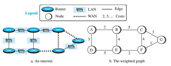 8.1 개요인터넷의 유니캐스트 라우팅은 수많은 라우터와 호스트를 효과적으로 연결하기 위해 계층적 라우팅을 사용8.1.1 일반적인 아이디어 패킷 경로: 패킷은 출발지 호스트의 기본 라우터인 발신지 라우터(source router) 시작하여 목적지 호스트의 기본 라우터인 목적지 라우터(destination router)로 전달라우터의 역할: 출발지 및 목적지 호스트는 포워딩 테이블이 필요 없으며, 인터넷 내 라우터만 포워딩 테이블을 유지하여 패킷 경로를 결정.경로 선택 문제: 출발지와 목적지 사이의 여러 경로 중 가장 적합한 경로를 선택해야 합니다. 그래프로 표현한 인터넷 그래프(graph) 표현: 라우터는 노드(node)로, 라우터 간 네트워크는 선(edge)로 표현됩니다.가중치 그래프(weighted ..